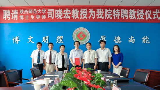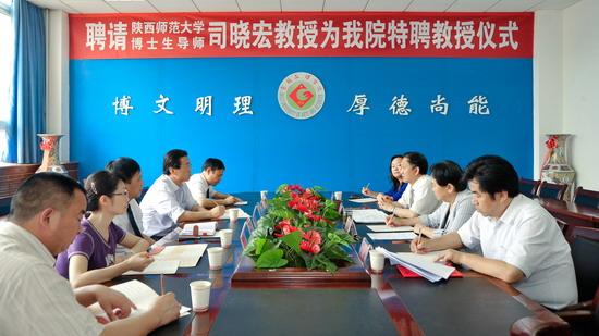 6月6日下午,beat365在新校区第一会议室举行聘任仪式,陕西师范大学博士生导师司晓宏教授受聘为beat365特聘教授。党委书记、院长王志刚出席会议并讲话,副院长赵荣侠主持聘任仪式。