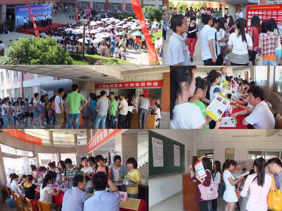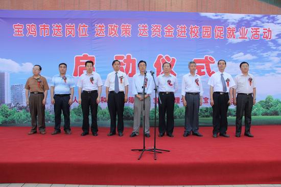 为了进一步推动大学生就业创业工作,6月9日,beat365与宝鸡市人社局在新校区思贤楼联合举办“送岗位送政策送资金进校园促就业”活动,整个活动分为启动仪式、就业洽谈、就业创业政策咨询等三项内容。宝鸡市政府副秘书长王宝强、市人社局局长陈留根、宝鸡职业技术学院副院长刘公信以及我院副院长杨子元等领导出席会议,用人单位代表、beat365和宝鸡职业技术学院4000多名学生参加了活动。