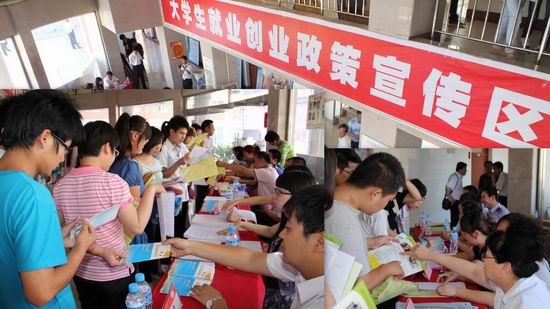 启动仪式结束后,各位领导进入洽谈会现场进行视察指导。此次活动共邀请到用人单位120多家,提供就业岗位2500余个。参会单位和应聘学生积极互动,现场交流,双向选择,部分低年级学生也积极参会,提前感受求职洽谈氛围,为将来就业积累经验。整个洽谈会气氛热烈有序;在洽谈会的现场,市人社局下属各职能部门还组织开展了就业创业政策宣传咨询活动,工作人员向学生宣讲国家和省市有关大学生就业创业方面的政策,答复学生咨询,免费发放就业创业政策宣传资料。