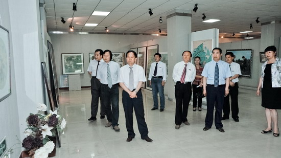 教务处处长王富平,学工部(处)长李周让,教务处副处长李景宜,美术系党总支书记唐晓育、主任刘进锁、副书记樊林森、副主任王宝强等陪同参观。(美术系党总支供稿)
