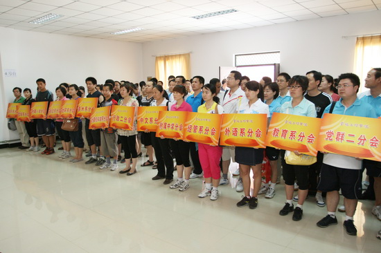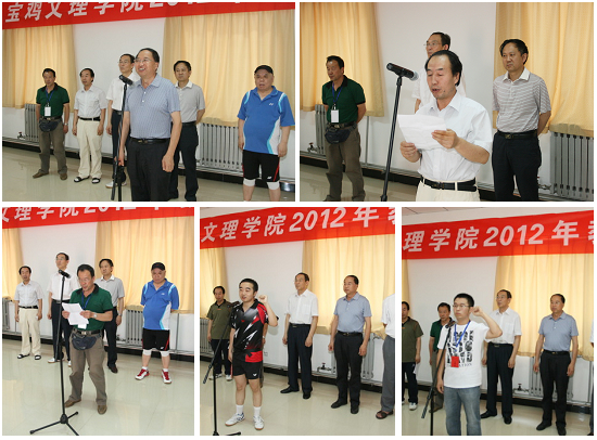 工会副主席张鹏致开幕词。他对本次比赛活动的举办表示热烈的祝贺,向全体参赛运动员、裁判员和所有工作人员表示衷心的感谢!他希望全体运动员要发扬“更高、更快、更强”的体育精神,顽强拼搏,奋力争先,赛出友谊,赛出风格,赛出水平。通过此项活动的开展更好地贯彻落实阳光体育运动,调动广大教职员工参与全民健身运动的极积性,从而达到增强体质、振奋精神、凝心聚力的作用,激励全校教职工以更昂扬的斗志,饱满的热情,强健的体魄为学校作出更大的贡献!计算机科学系教师朱丽叶、物理系学生陈安宁分别代表运动员和裁判员宣誓。