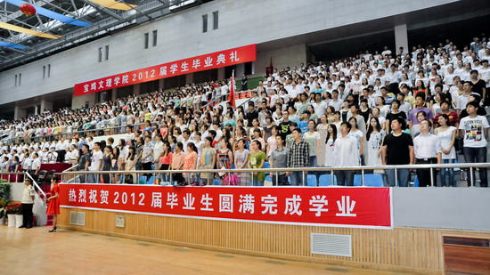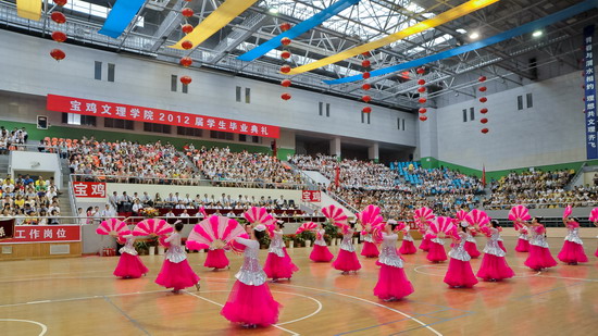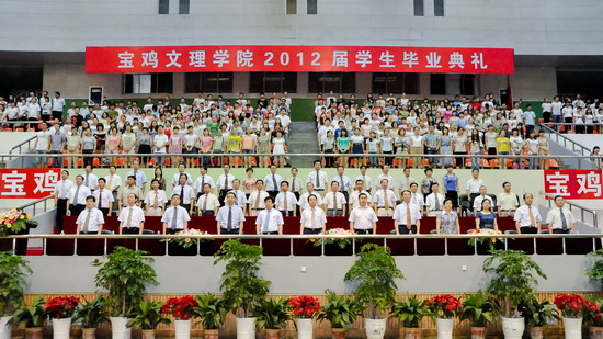 6月25日上午,beat3652012届学生毕业典礼在宝鸡市体育馆隆重举行。党委书记、院长王志刚,宝鸡市体育局长李富生,党委副书记米晓东、李全武,副院长傅志军、赵荣侠、杨子元等出席典礼仪式。各部门、各单位负责人、全体毕业生及在校生代表共4000多人参加了毕业典礼。典礼由傅志军主持。