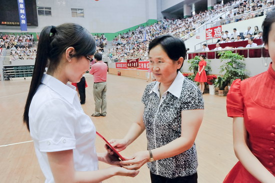 在毕业典礼王志刚向毕业生代表颁发了毕业证书;米晓东、李全武为西部志愿者颁发奖金;赵荣侠、杨子元为校级优秀毕业生代表颁发荣誉证书。教务处处长王富平宣读了2012届学生毕业资格审查结果;学工部(处)长、毕业生就业指导服务中心主任李周让宣布校级优秀毕业生及大学生服务西部志愿者名单。