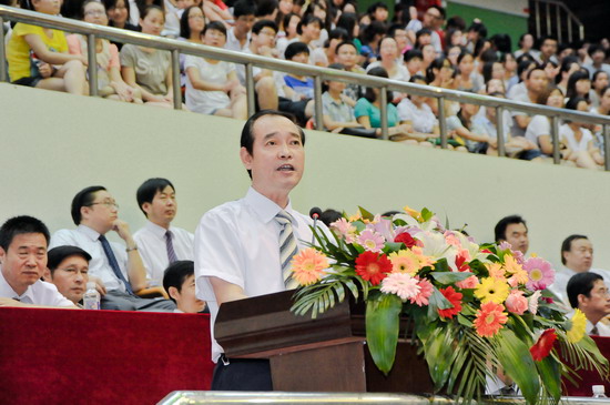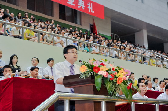 王志刚发表了热情洋溢的讲话,他代表学校党政领导和全体师生员工,对圆满完成学业的毕业生们表示热烈祝贺!他充分肯定了四年来毕业生们取得的优异成绩,同时对毕业生们提出了殷切希望:一是坚守理想,志存高远,做一名有益于社会的人;二是认真做人,踏实做事,做一名德才兼备的人;三是不断学习,勇于创新,做一名超越自我的人;四是学会感恩,饮水思源,做一名知恩图报的人;希望同学们牢记宝文理校训,唱响宝文理校歌,弘扬宝文理精神,坚定理想信念,强化社会责任感,用所学知识和能力建功立业,报效国家,成为社会的栋梁,为国家的富强、人民的幸福、民族的振兴和人类的进步贡献自己的智慧和才华,从而无愧于我们这个伟大的时代。最后他深情祝福所有毕业生前程似锦,事业辉煌!爱情甜蜜,婚姻美满!一生平安,一生幸福!