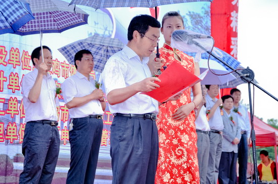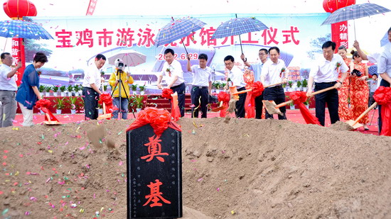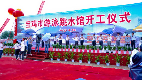 6月29日上午,宝鸡市游泳跳水馆开工仪式在beat365英国官方网站隆重举行。宝鸡市委书记唐俊昌宣布开工令,宝鸡市市长上官吉庆致辞,宝鸡市政府副秘书长、市体育局局长李富生介绍了工程情况。beat365英国官方网站党委书记、院长王志刚,副院长杨子元,市委常委、市委秘书长白升安,市人大副主任富君,市政协主席张民义,副主席宋建国,市政府秘书长武军,副秘书长李献卿,省体育局竞赛处长董利等出席开工仪式。宝鸡市副市长刘桂芳主持开工仪式。