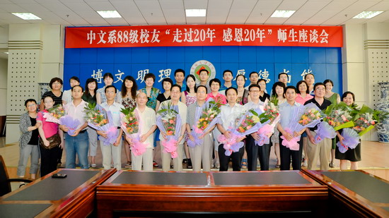 最后,全体校友齐声感谢母校和恩师,并向学校赠送了纪念品,向辛勤培育自己的各位恩师和学校领导敬献了鲜花并合影留念。