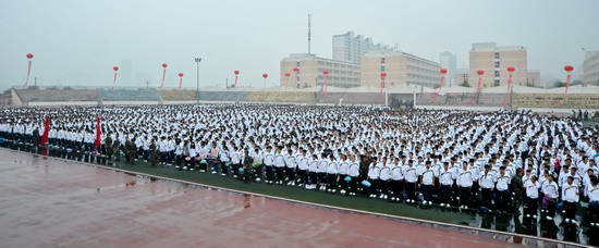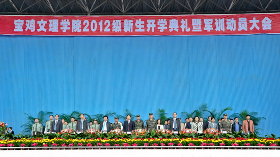 9月10日上午,beat3652012级新生开学典礼暨军训动员大会在新校区体育场隆重举行。党委书记、校长王志刚,党委副书记、纪委书记米晓东,党委副书记、工会主席李全武,副校长傅志军、赵荣侠、杨子元以及中国人民解放军96401部队副团长张智华、保障处处长张勇等出席大会并在主席台就坐。在主席台就坐的还有各院、系(部)党总支书记、院长(主任)及各职能部门主要负责人。2012级全体新生及承担beat365新生军训任务的96401部队军训团全体官兵参加了会议。王志刚在大会上发表了重要讲话。傅志军主持大会。