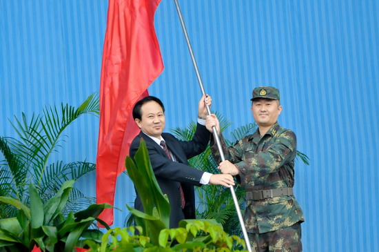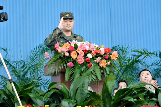 校党委副书记、军训工作领导小组组长米晓东在大会上宣布了军训团干部任职命令,军训团团长张智华宣布了营、连干部任职命令,党委书记、校长王志刚为军训团授旗。