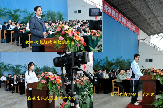 省级教学名师、硕士研究生导师、文学与新闻传播学院院长赵德利教授代表全体教师在大会上作了发言。计算机科学系2010级学生聂迪代表在校生、政法系2012级新生邢健代表全体新生在大会上分别作了发言。(教务处供稿)