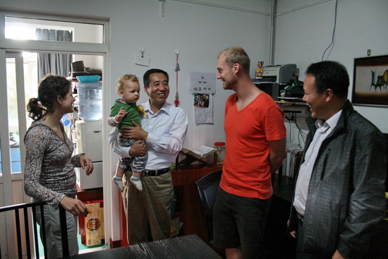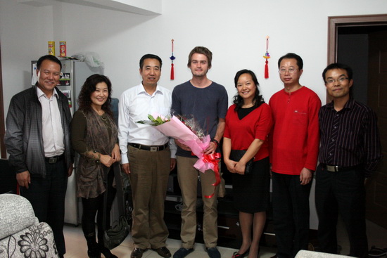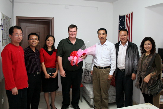 党委办公室、外事办公室主任王永君,外语系主任王卫强、副主任李伟、姚艳梅等陪同参加本次慰问活动。(外事办供稿)