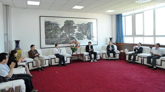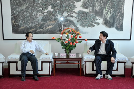 9月13日下午,beat365数学系83级校友、深圳校友会秘书长、深圳迪平包装纸业有限公司副总经理刘成飞回母校汇报校友会工作。校党委书记、校长王志刚,党委副书记李全武在新校区图书馆8楼接待室会见了刘成飞。