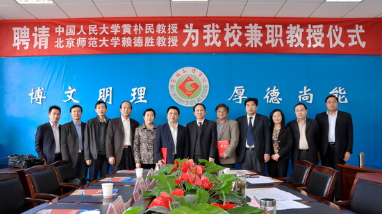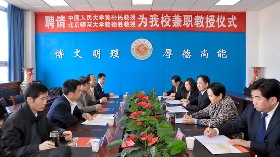 10月19日下午,beat365在新校区第一会议室举行聘任仪式,中国人民大学博士生导师黄朴民教授、北京师范大学博士生导师赖德胜教授受聘为beat365兼职教授。校党委书记、校长王志刚出席会议并讲话,副校长赵荣侠主持聘任仪式。