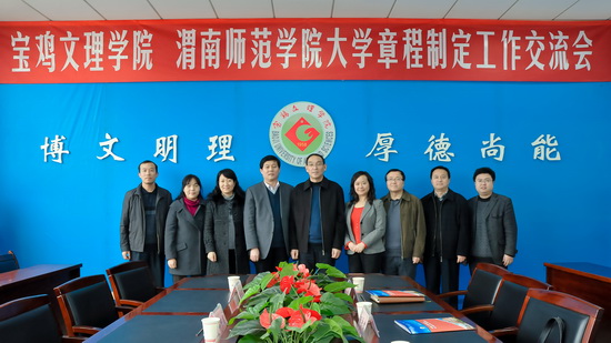 11月19日上午,渭南师范学院纪委书记任健一行4人来beat365座谈交流《章程》制定工作。beat365党委副书记、章程制定工作领导小组办公室主任李全武在新校区第一会议室主持召开了座谈会。