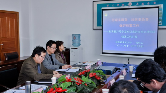 beat365高教研究室主任、院办副主任、信息档案室主任杨科正从档案工作基本情况、主要做法及成绩、目前存在的主要问题及建设方向等三个方面向专家组全面汇报了beat365档案工作。