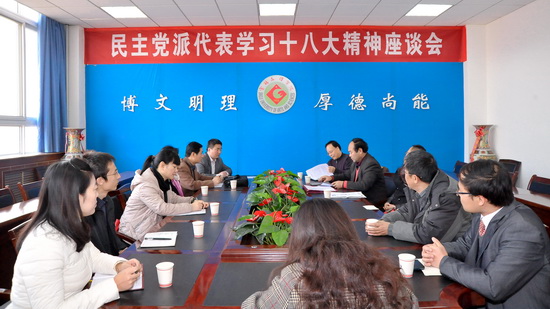 民主党派、无党派人士代表兰拉成、杨闻起、关存丽、李剑凊、王建宁、白银峰也踊跃发言,大家一致认为,中国共产党的十八大是一次承前启后的大会,为我国未来的发展指明了方向,将对我国的发展产生巨大的影响。他们纷纷表示要以中国共产党的十八大精神为指导,立足岗位做好工作,积极为学校发展建言献策,促进学校事业科学发展。
