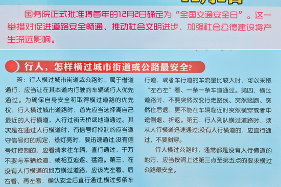 为深入推进“文明交通行动计划”,广泛发动全社会共同关注交通安全,大力提升全民交通安全意识、法制意识和文明意识,公安部决定,将每年12月2日定为“交通安全日”。全国第一个交通安全日的主题是“遵守交通信号,安全文明出行”。