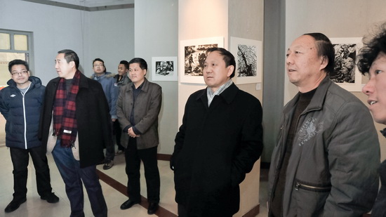 12月14日,校党委书记、校长王志刚,副校长傅志军等前往艺术楼一楼美术展厅参观美术系版画教学汇报展。