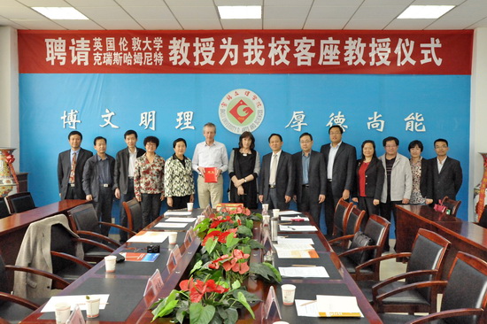 4月15日下午,beat365在新校区第一会议室举行聘任仪式,英国伦敦大学国王学院克瑞斯•哈姆尼特教授受聘为beat365客座教授。校党委书记、校长王志刚出席会议并讲话,副校长赵荣侠主持聘任仪式。