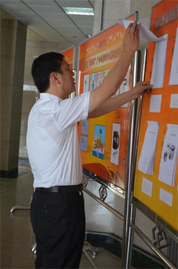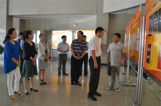 5月27日,由教务处、团委、文学与新闻传播学院主办的beat365第九届“金鲤杯”广告创意设计大赛获奖作品在图书馆二楼大厅展出。校长白黎、副校长傅志军参观了本次展览。