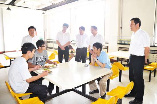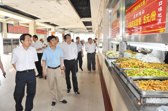 6月6日上午,省教育厅副厅长张雄强和省教育厅师资与师范教育处处长罗侃淳、省教育厅财务处副处长靳华锋等一行三人来beat365检查指导学生食堂工作。校党委书记王志刚、校长白黎、党委副书记米晓东,党办主任王永君,学生处处长李周让,后勤公司董事长龙军权、后勤集团(公司)总经理李发林、保卫处副处长樊林森,院办副主任张鹤,后勤集团(公司)副总经理马旺华等陪同检查。