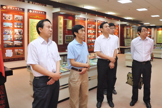 在检查开始前,张雄强等一行三人参观了beat365校史展览馆。