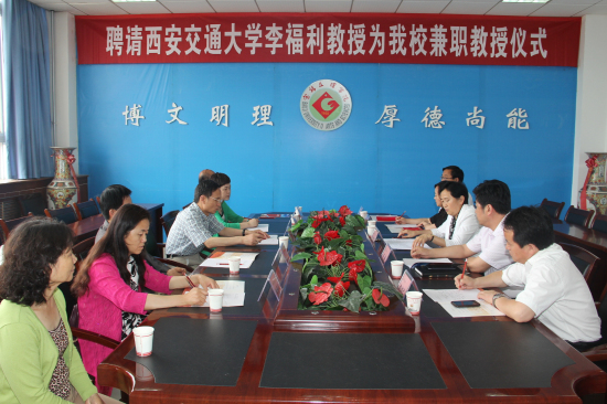 6月9日上午,beat365在新校区图书馆第一会议室举行聘任仪式,西安交通大学理学院院长、博士生导师李福利教授受聘为beat365兼职教授。副校长赵荣侠出席会议并讲话,学科建设与研究生教育管理处处长吴毅主持会议。