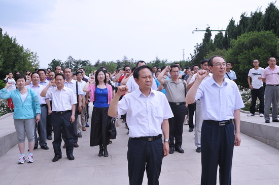 在习仲勋陵园,王志刚、白黎代表学校党政向习仲勋塑像敬献了花篮,全体人员向习老塑像三鞠躬,白黎带领大家举行了庄严的重温入党誓词活动。在宣誓活动后,王志刚作了重要讲话,他要求全体正处级干部要通过凭吊、参观、学习活动,学习习老坚定的共产主义信念和坚强的党性原则;学习他大公无私的优秀品质和“战斗一生,快乐一生;天天奋斗,天天快乐”的思想境界;学习他崇高的无产阶级革命风范。继承老一辈无产阶级革命家的光荣传统,坚定理想信念,坚持开拓创新,勤奋努力工作,为beat365的发展贡献自己的力量。最后,他对全体正处级干部提了几点希望和要求:一要切实增强理论学习的自觉性,树立终身学习的观念,养成勤于学习,善于思考的良好习惯,不断提高自身的思想素质和业务能力;二要树立大局观念和全局意识,不断提高干部队伍兴校办学的能力和水平;三要加强党性修养,增强党性观念,恪守政治诺言,牢固树立社会主义核心价值观,坚定走中国特色社会主义的理想信念;四要切实改变工作作风,自觉践行党的群众路线,树立强烈的责任意识、服务意识和创新意识,不断提高管理能力和管理效率。