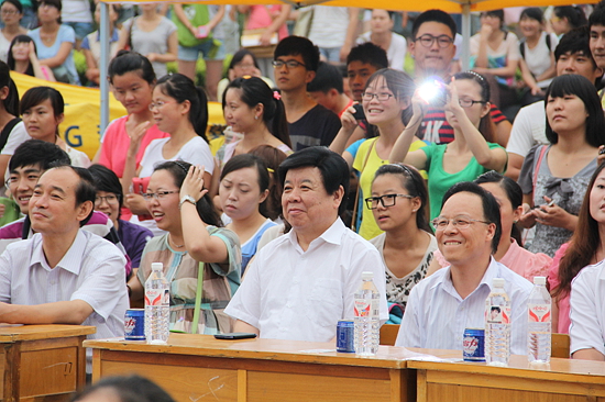 校党委宣传部部长彭志启,校党委学工部部长、学生处处长李周让,后勤集团党总支书记张炳武,历史文化与旅游系党总支书记吕陇平,体育系党总支书记梁新民,体育系系主任吴长稳,美术系党总支副书记官莉萍,各院系团总支书记及学生代表共同观看了比赛。(校团委供稿)