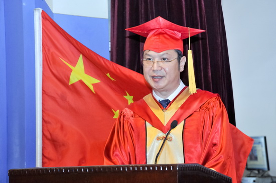 校长白黎在学位授予仪式上作了重要讲话。他向圆满完成学业并获得学士学位的同学们表示热烈的祝贺与诚挚的祝福,并寄语同学们要胸怀天下,报效国家;不断学习,时刻进步;怀抱理想,勇于创新;牢记使命,常怀感恩。希望同学们时刻关注学校的发展,为母校的发展贡献自己的智慧和才干,真诚地邀请各位同学常回家看看。祝同学们前程似锦,事业辉煌,爱情甜蜜,婚姻美满!一生平安,一生幸福!