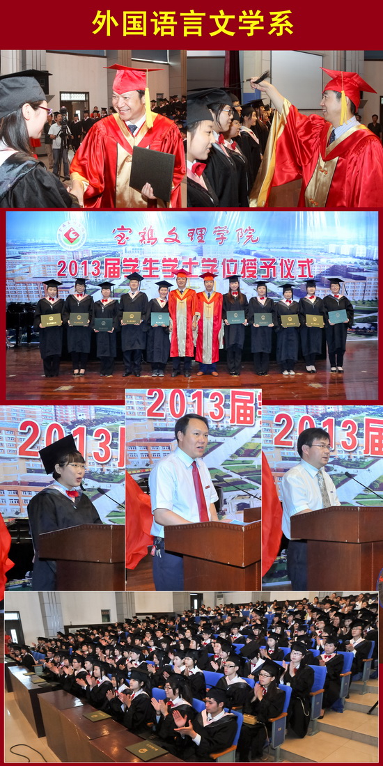 各院系院长、主任和教师代表发表了热情洋溢的致辞。2013届各院系学生代表作了发言。奏校歌仪式后,2013届毕业生学士学位授予仪式圆满结束。(教务处供稿)