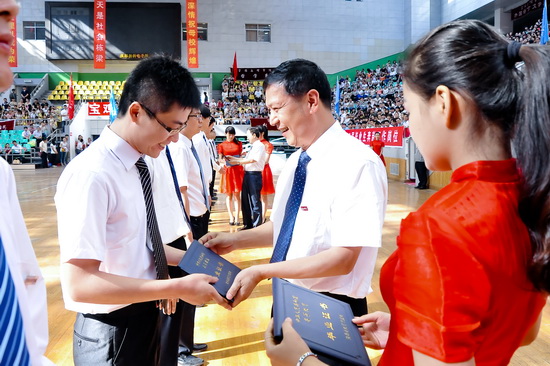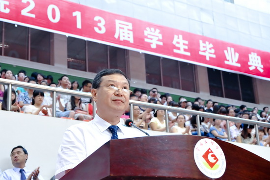 毕业典礼上,白黎发表了热情洋溢的讲话,他代表学校向圆满完成学业的毕业生们表示热烈祝贺,向为学生成长付出辛勤劳动的教职员工表示敬意,向始终关心支持学校发展的学生家长和社会各界人士表示感谢!他说,母校不会忘记,这四年你们承文理精神,立鸿鹄大志,刻苦学习、奋发进取,将“博文明理,厚德尚能”的校训潜移默化地融入到青春的奋斗之中,昔日稚嫩懵懂的脸庞而今写满自信与果敢,奋发激昂地面向未来。同时对毕业生提出了殷切希望:一要追求真知识,传递正能量;二要常怀感恩心,争做勤勉人;三要增强责任感,谱写新篇章!最后他深情祝福所有毕业生前程似锦,事业辉煌!爱情甜蜜,婚姻美满!一生平安,一生幸福!