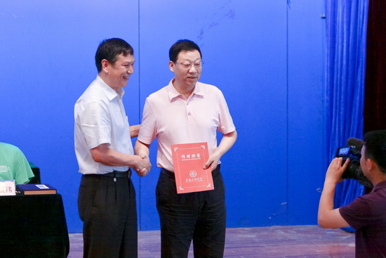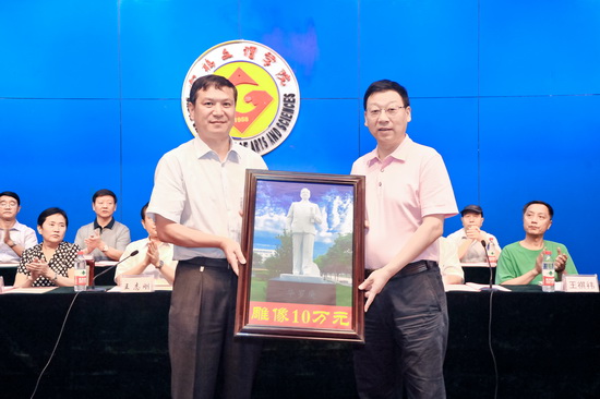 座谈会上,beat365举行了“79级校友向母校捐赠塑像”捐赠仪式,白黎代表学校接收了数学系79级校友刘战代表全体校友向母校捐赠的价值10万元的华罗庚雕像,并向79级校友颁发了捐赠证书。
