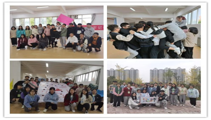 活动开始前,同学们洪亮地喊出“华夏青年,造梦未来,请党放心,强国有我”的口号,展示了大学生听党话、跟党走,励志奉献青春力量的坚定信念。活动中,学生干部组建自强不息队、学无止境队、勇往直前队和斗志昂扬队,全体队员在队长带领下,齐唱队歌、齐喊队呼,彰显团队风采。同学们齐心协力完成了“众志成城”“神笔马良”“重走长征路”等项目的挑战任务。特别是重走长征路,要求每位同学牵引大幅长征路线图一角,通过掌控一个网球滚动,代表红军主力部队前进路线。队员们齐心协力从遵义会议走到四渡赤水,从爬雪山过草地走到激战腊子口,展示出整个团队团结协作、战胜困难的决心和毅力。同学们也深刻地体会到团结与合作、挑战与超越、担当与奉献对团队发展和个人成长的重要意义。