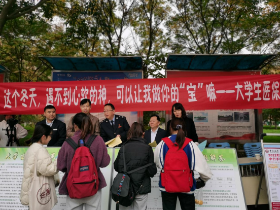 工作人员为来往学生发放了医保政策宣传单,详细介绍了大学生在校参保享受的优惠政策、异地医保报销流程、医保费征收标准和缴费渠道,现场指导学生通过中国银行手机银行、微信、支付宝等途径缴纳医保费。活动现场气氛热烈,新颖的宣传语、醒目的宣传展板吸引了很多学生驻足咨询。