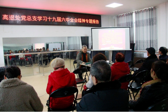 11月25日上午,离退处举行学习贯彻党的十九届六中全会精神宣讲报告会。beat365老科协、老教授协会副会长,政法学院原院长石玉平教授作了题为《中国共产党第三个历史决议的历史地位和指导意义》的主题宣讲报告。离退处党总支理论学习中心组成员和学校“两协会”理事参加了会议,报告会由离退处党总支书记杨辉主持。