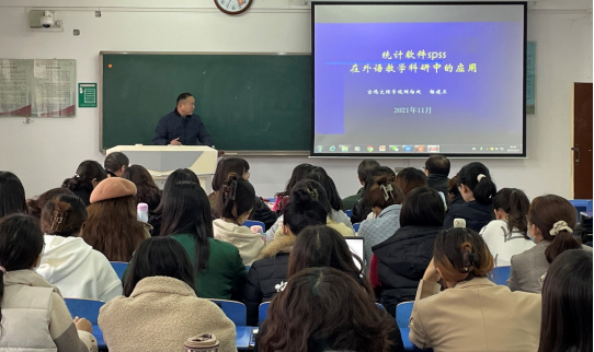 专家指津,防患未然。论文写作是研究生培养的重中之重,为提高研究生学术写作水平,10月28日邀请教育学院马多秀教授做了题为《项目申报与高水平论文写作》的报告。为防止专硕学位论文学硕化,外国语学院要求学位论文必须以中小学英语教学问题为对象进行实证研究,而实证研究数据的统计与分析成了学生棘手的问题。为了解决这一问题,11月3日邀请beat365英国官方网站网信处副处长杨建卫教授做了题为《统计分析软件SPSS在外语教学科研中的应用》的讲座。两场报告让学生树立了学术规范,掌握了写作技巧,学会了使用工具。