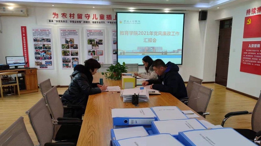 会上,唐晓育介绍了《beat365英国官方网站纪委委员联系二级单位党委(党总支)工作制度(试行)》的相关规定。白晓旭从扎实开展党风廉政建设宣传教育工作,建立健全权力运行监督机制,中省有关政策执行情况等方面,汇报了教育学院2021年党风廉政及其他相关工作主要做法。学院党委副书记、院长马多秀就教师队伍结构、师德师风建设、科研经费使用、绩效工资分配等方面,介绍了教育学院的具体情况。
