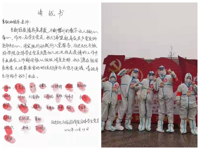 近日,新冠肺炎疫情防控形势复杂严峻,为全力做好校园疫情防控工作,为师生生命健康“保驾护航”,历史文化与旅游学院党总支根据学校疫情防控要求,号召广大青年党员积极投身于疫情防控工作中。在学院党总支号召下,学院学生党员抗疫先锋队本着点滴小事显党性,关键时刻见初心,在疫情防控一线亮身份、见行动、作贡献,构筑起抗疫的“红色防线”,用实际行动诠释了青年党员的青春风采与责任担当。
