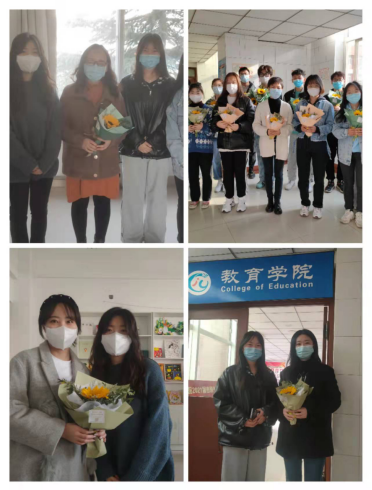 学子们用亲手制作的鲜花花束,表达对老师们节日的祝福,对坚守在教学科研一线的女教职工,表达了诚挚的问候。教育学院女教职工长期承担着学院改革发展的重要任务,学院的每一个进步,都离不开女教职工的辛勤努力和默默奉献。在节日之际,学子们自发表达对老师的尊敬与感恩,既彰显了新时代青年大学生的精神风貌,也体现了学院三全育人工作的成效。(教育学院党委 文/屈晟、史洁 图/刘莹 审核/白晓旭)