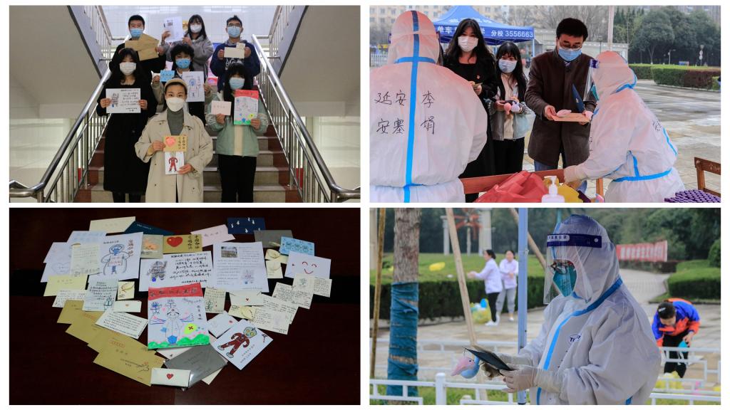 细雨朦胧中,白志勇带领大家为辛苦工作的防疫人员送上了同学们精心准备的感谢信、贺卡和小礼品,感谢这些“最美逆行者”用勇敢的行动诠释着责任和担当。“白衣执甲、逆行而上、幸得有您、山河无恙,感谢白衣天使。”短短数十字书写出奔忙在防疫一线医护人员的辛勤和付出,也表达出政法学子对医护人员的敬佩和感激之情。这一举动深深地感动着“大白”们,他们表示很开心能为文理师生服务,这是他们的责任与使命!