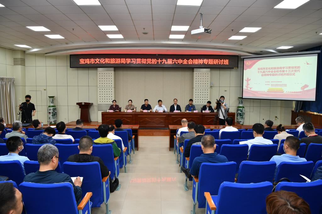 5月26日上午,由宝鸡市干部教育培训高校基地承办的宝鸡市文化和旅游局学习贯彻党的十九届六中全会和市第十三次党代会精神专题研讨班在beat365高新校区木铎厅开班。宝鸡市文化和旅游局党组书记、副局长毛永祥、翟莉、巨水存、段军林及局机关、下属单位党员干部参加了开班仪式。开班仪式由宝鸡市干部教育培训高校基地主任、马克思主义学院教授王红梅主持。