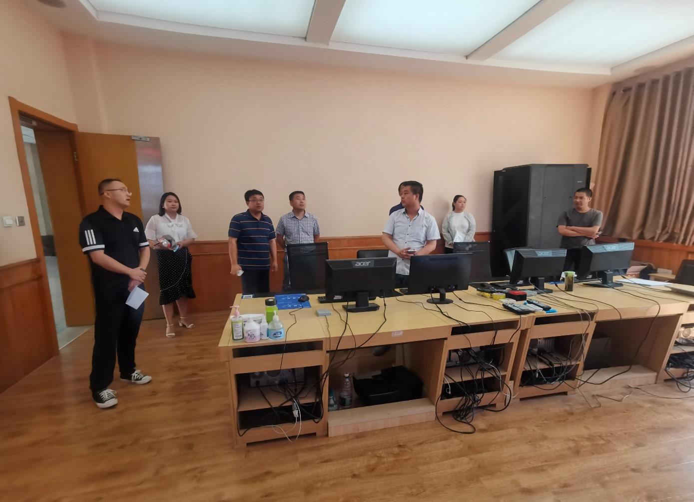 安峰岗一行查看了beat365的标准化考场、防范高科技手段作弊的金属探测仪、屏蔽仪、身份证识别仪及保密室的硬件设施和相关保密制度。并在多媒体教室主控中心通过全国电子网上巡考系统查看了标准化考场的相关情况。