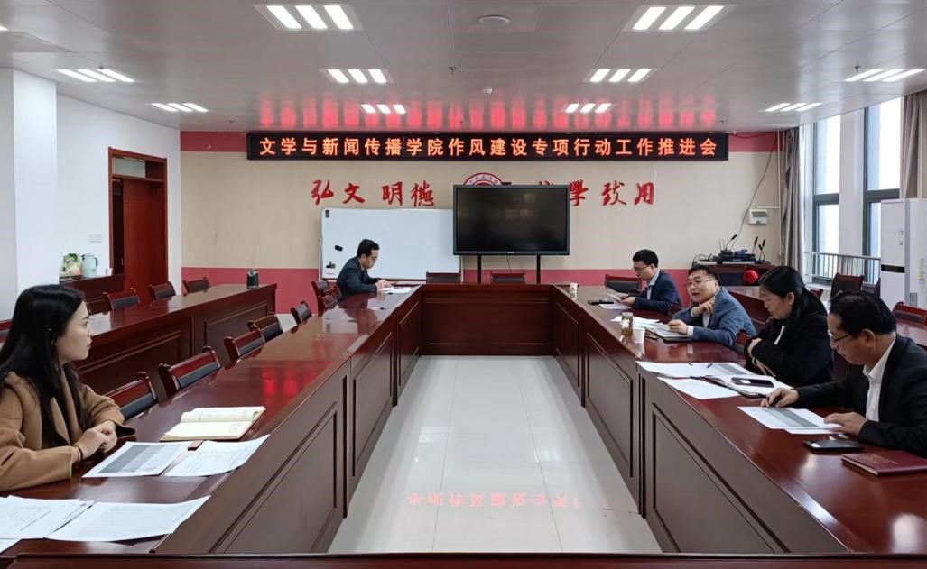 10月20日上午,文学与新闻传播学院在高新校区博文楼1401会议室召开作风建设专项行动工作推进会。学院党政领导、党委委员、办公室工作人员参加了会议。会议由学院党委书记郭锋航主持。