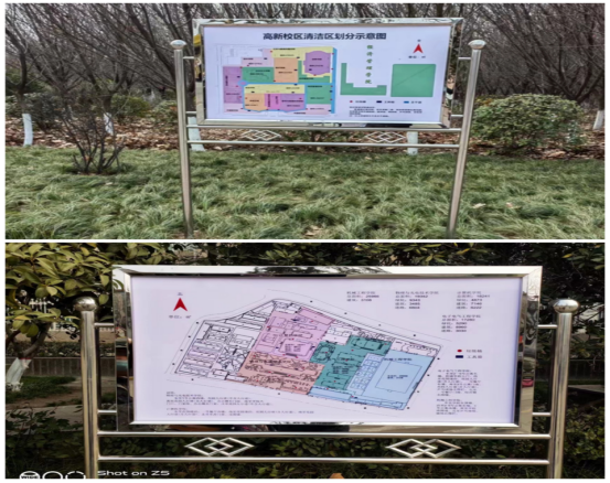 强化责任担当,明确区域划分。后勤管理处(后勤服务集团)分别在石鼓校区、高新校区各学院楼宇醒目处立牌划区,设置醒目标识,做好个性化责任区平面图,明确责任区划分范围与内容,以网格化形式分区域进行监督。