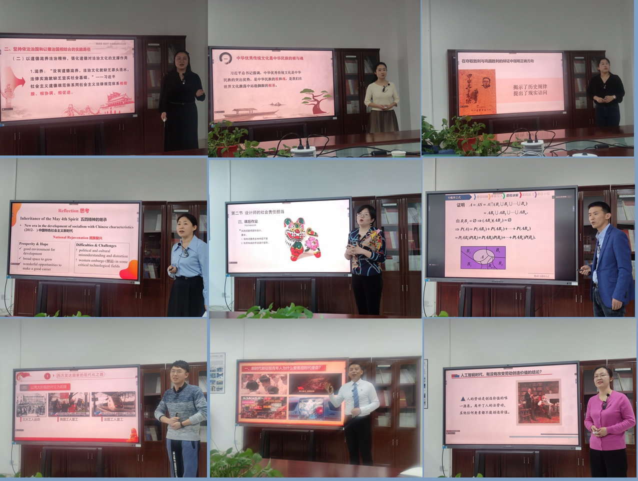 3月5日晚,学院邀请西北政法大学魏奇教授、西安美术学院沈宝莲教授、陕西科技大学吴明永教授、陕西理工大学陈燕教授、西安财经大学王勇教授指导了思政课程与课程思政教师“大练兵”系列展示辅导第一阶段活动。专家观看了参加思政课程“大练兵”活动的韩静、傅文、林兆扬三位老师的展示,并提出了改进优化的意见和建议。