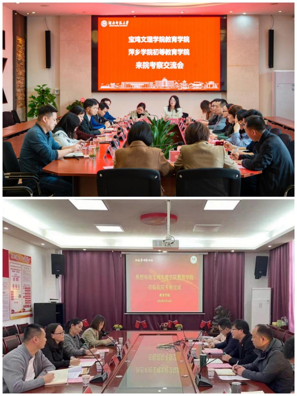 3月10日,马多秀一行赴湖南第一师范学院教育学院和湖南师范大学教育科学学院进行交流学习,就教育学、心理学、学前教育学的专业发展、师范专业认证、人才培养及科学研究等方面作了交流。湖南第一师范学院教育学院院长胡春光和湖南师范大学教育科学学院院长刘铁芳就有关师范专业认证的管理办法及运行机制进行了介绍。