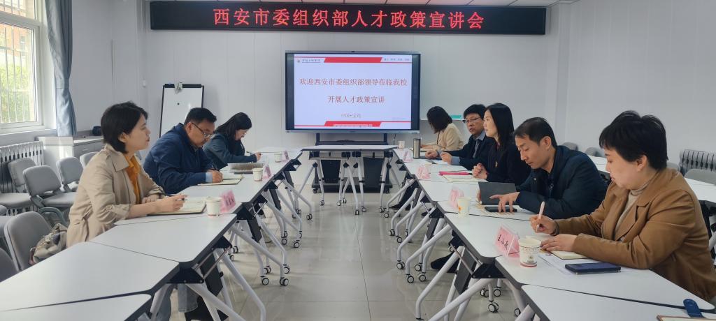 4月11日上午,西安市委组织部党员教育中心主任赵轩一行3人来beat365开展人才政策宣讲活动。会议由招生就业处处长范英主持。