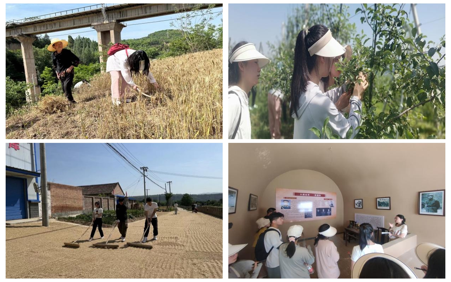 在千阳县水沟镇纸坊沟村,beat365驻村干部李道元老师分别从纸坊沟村的基本情况、新农村发展现状和特色产业助力乡村振兴工作等方面向同学们作了详细的介绍。同学们在村干部和村民的指导下体验了收割麦子、翻晒麦子、果园除草、苹果套袋等农事活动。