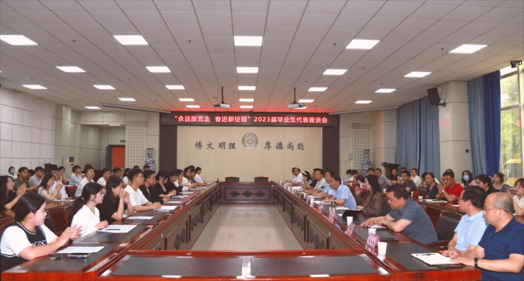 参加座谈会的毕业生代表中,有荣获2023届省级、校级优秀毕业生、优秀学生干部荣誉称号的同学,有即将奔赴国内外名校继续深造的同学,有到专业岗位施展才干建功立业的同学,有坚定选择投身祖国边疆建设和西部支教的同学……他们深情回顾了四年来在学校学习生活、科研实践、志愿服务的宝贵经历和点滴感悟,表达了对母校培养的感激之情、对师长教诲的感恩之心、对同窗好友的美好祝福、对步入人生新征程的期待向往,并结合自己在校学习生活实际,为学校发展建言献策。