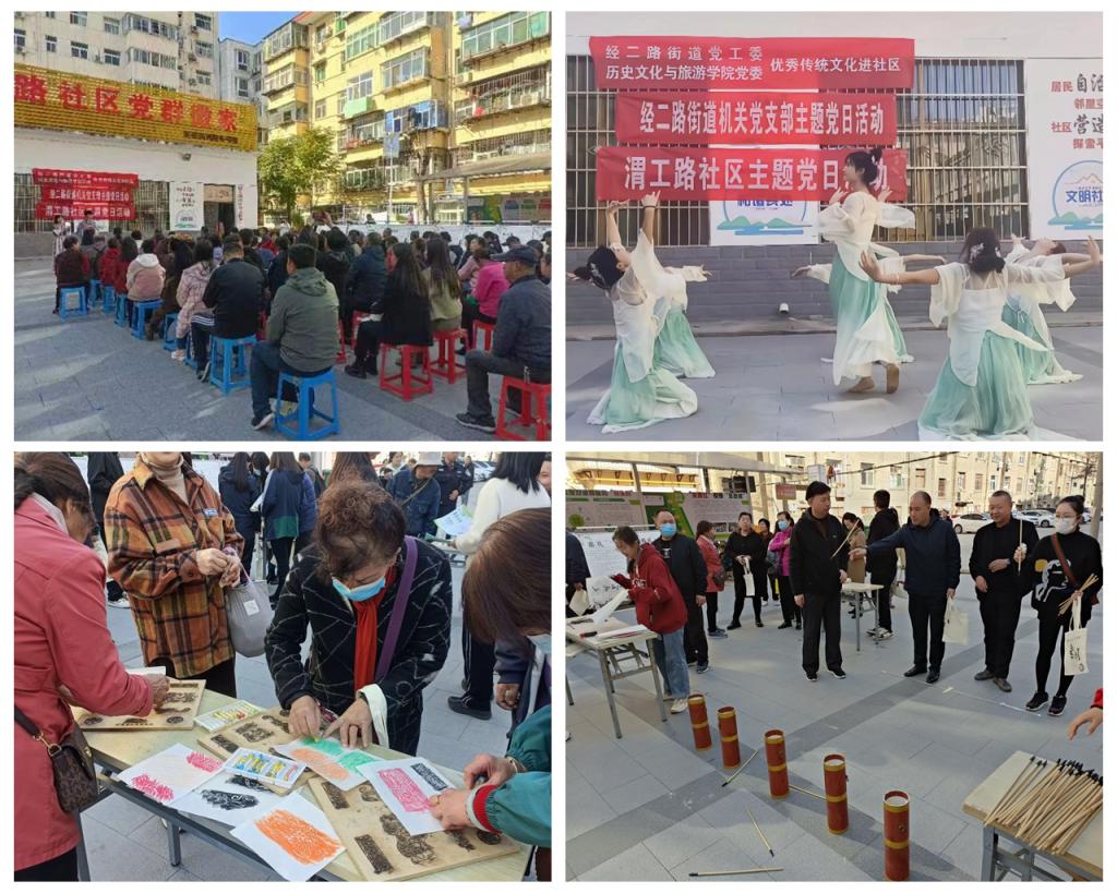 11月8日下午,历史文化与旅游学院师生党员与经二路街道党工委联合在渭工路社区举办中华优秀传统文化进社区活动。